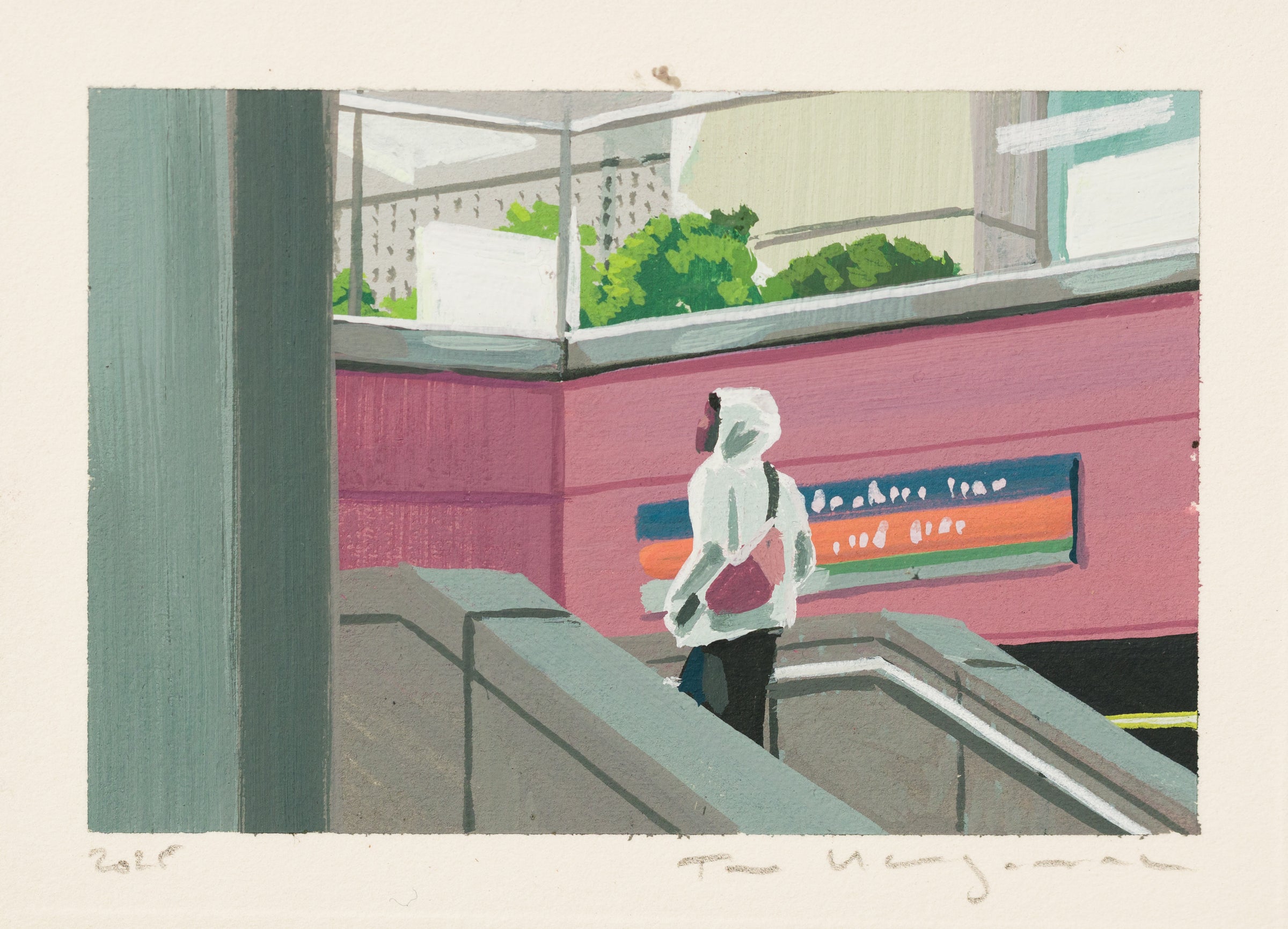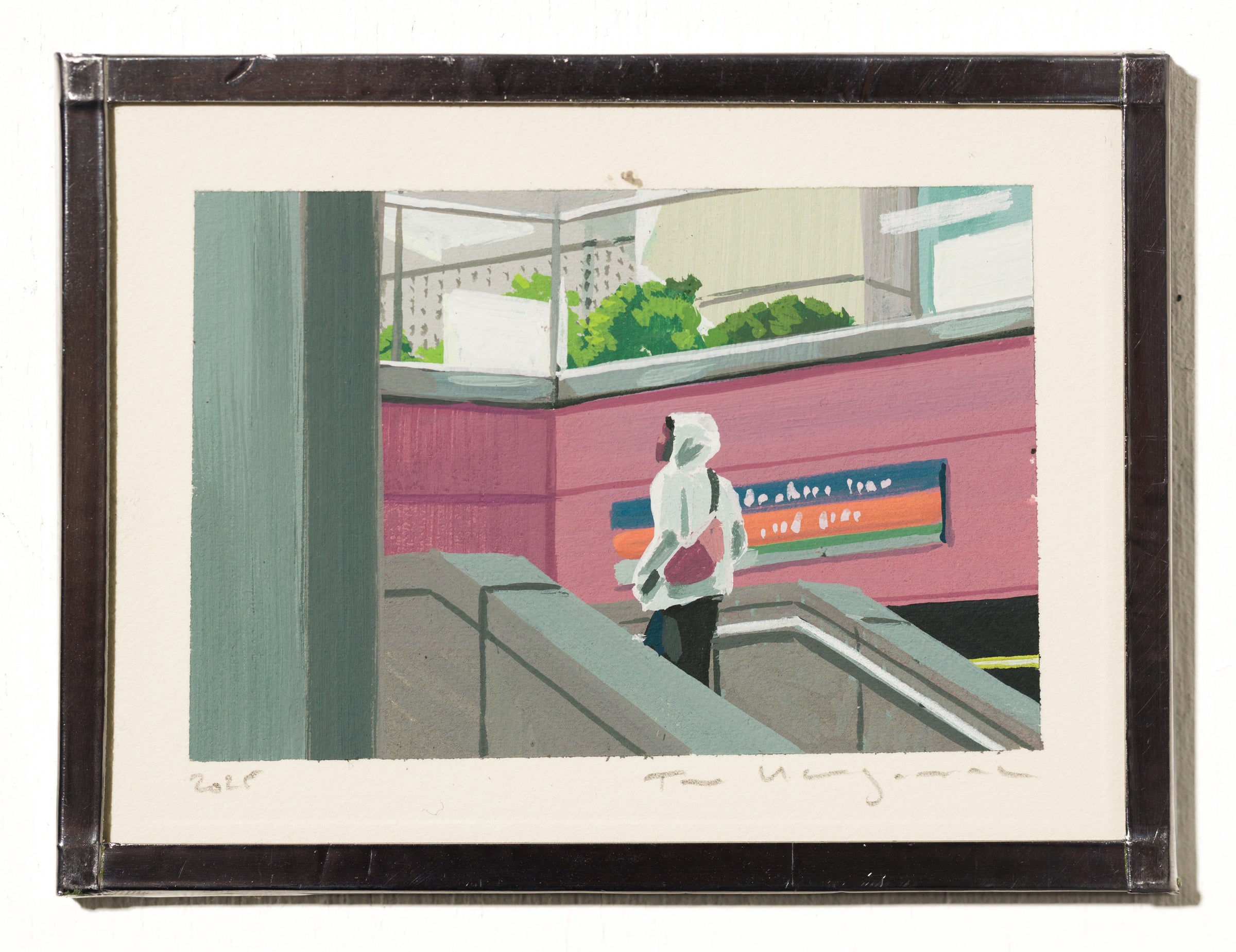 acrylic on paper, museum glass, metal tape edge, backing with hanging loop