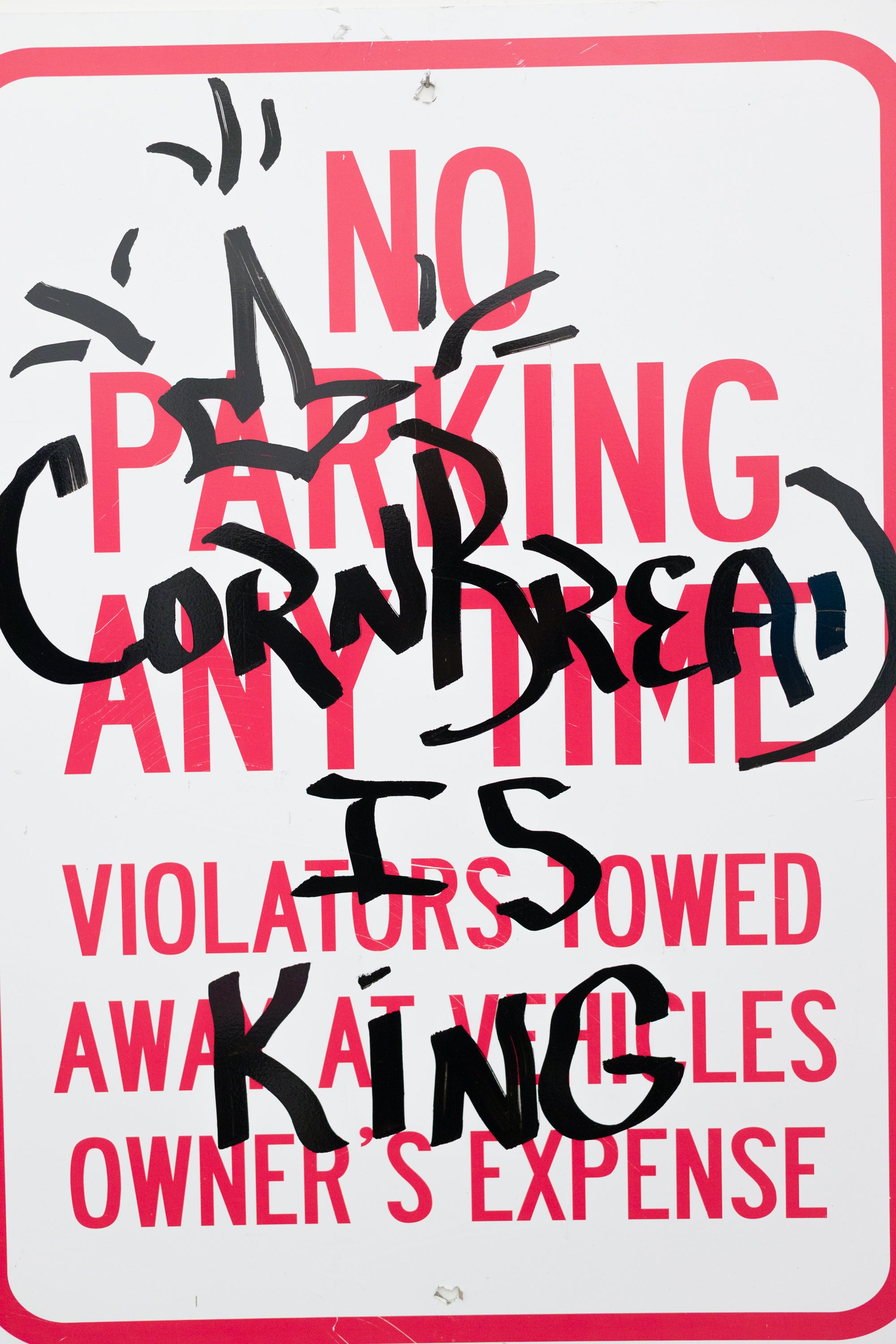 Cornbread is King No Parking Anytime Sign