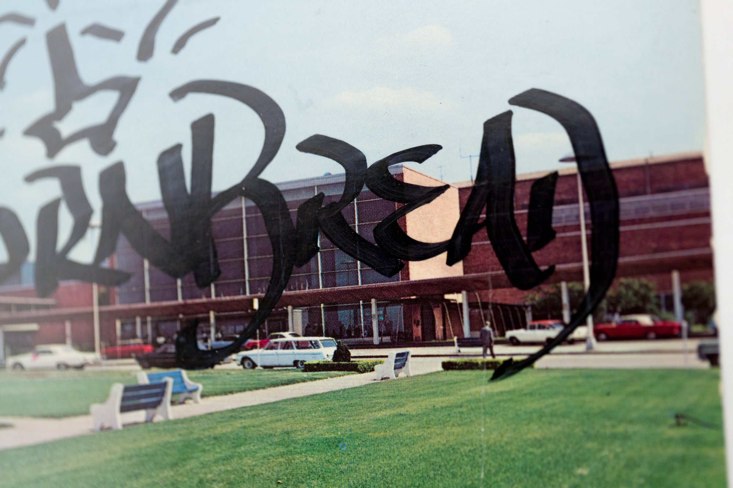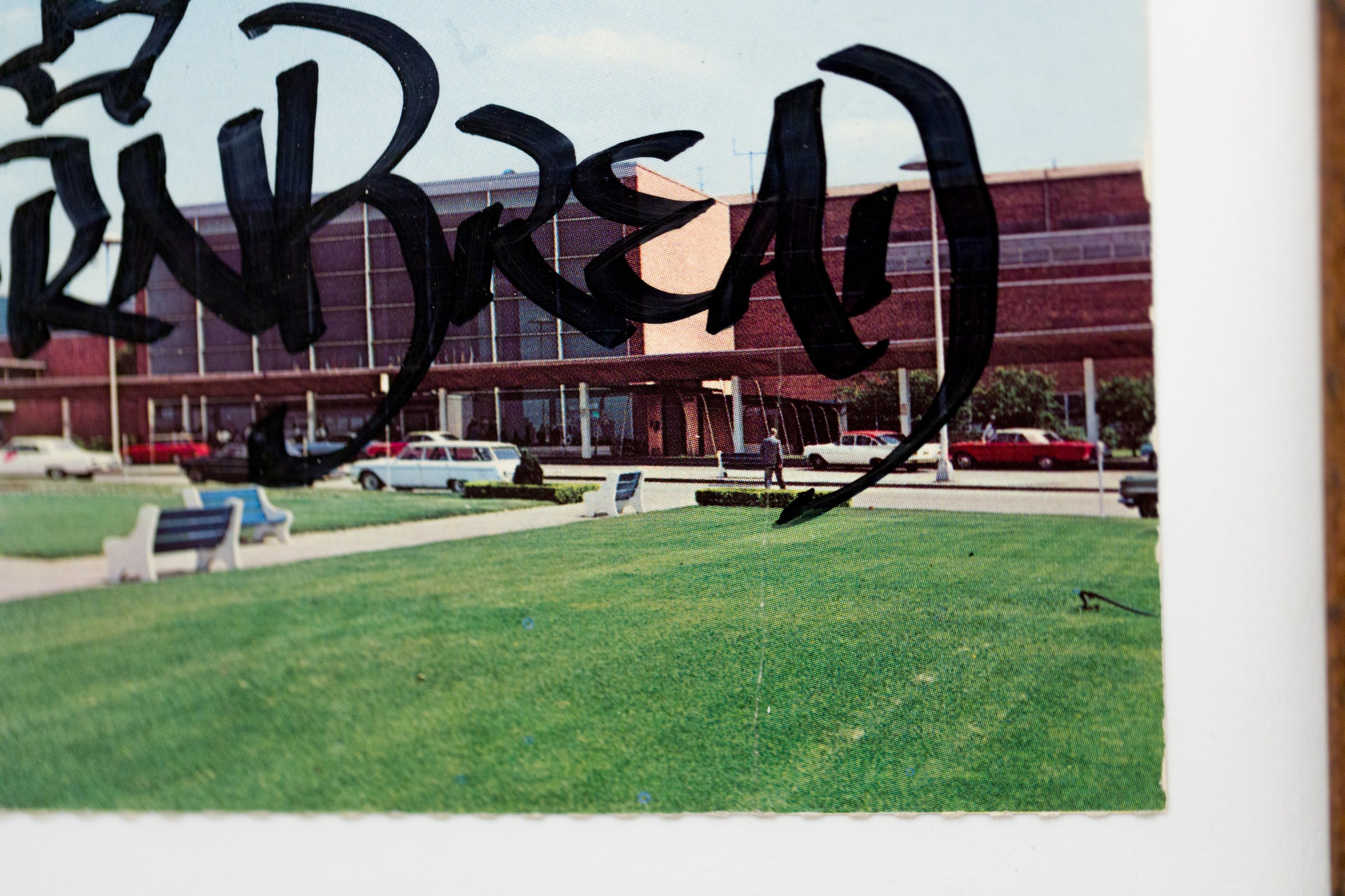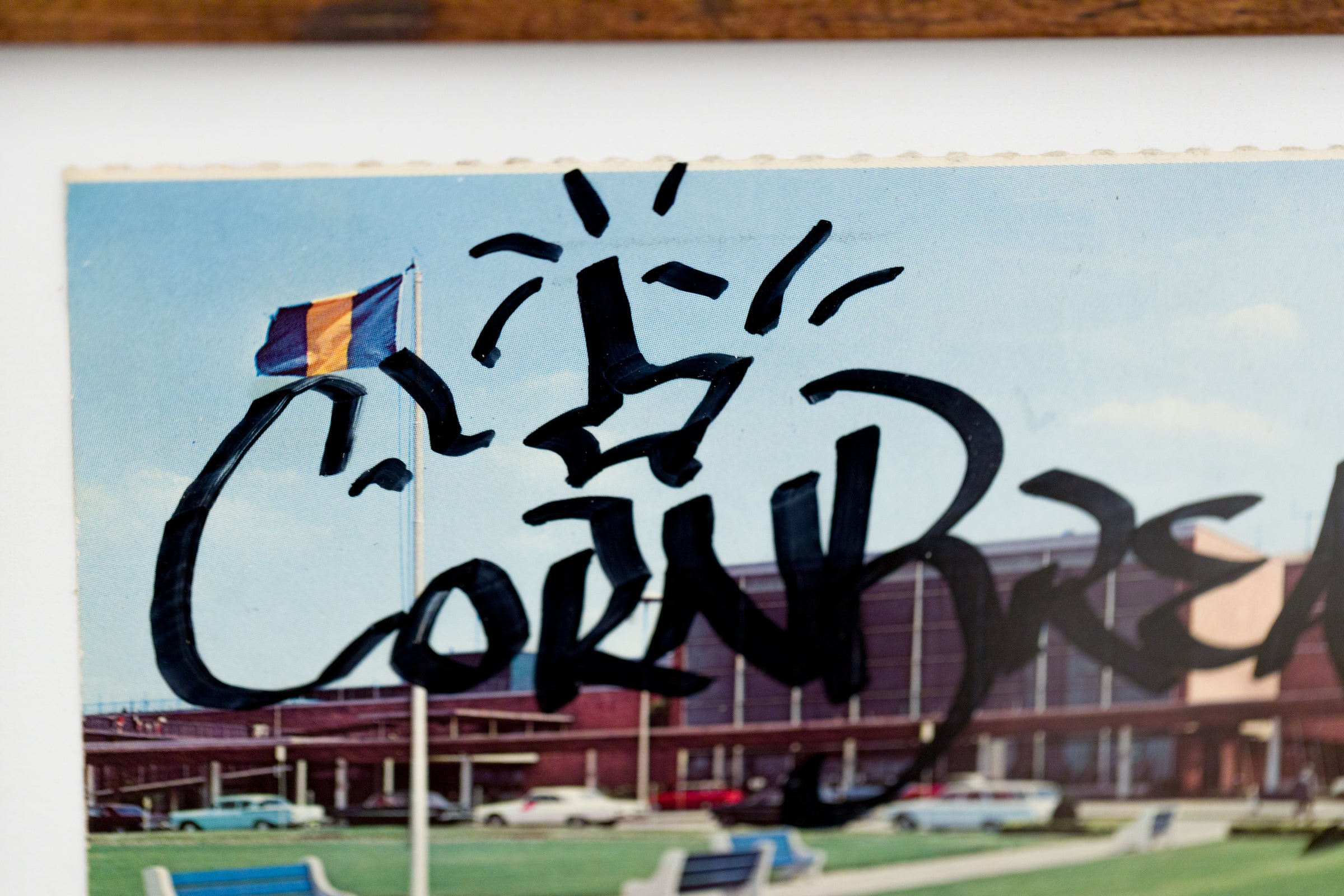 acrylic paint on vintage postcard