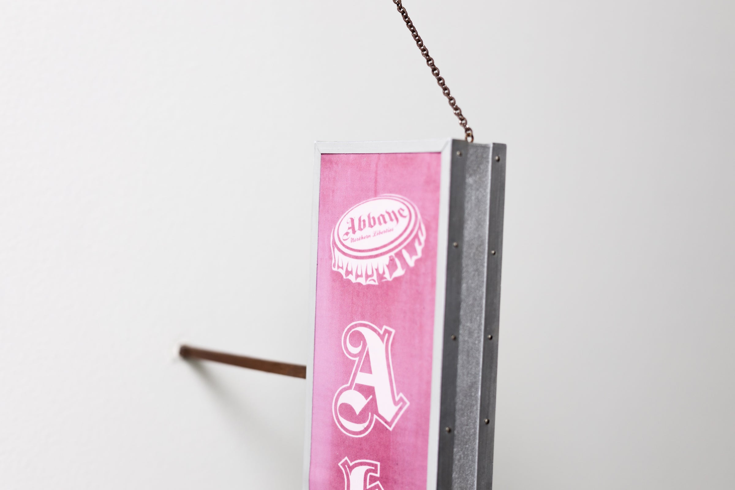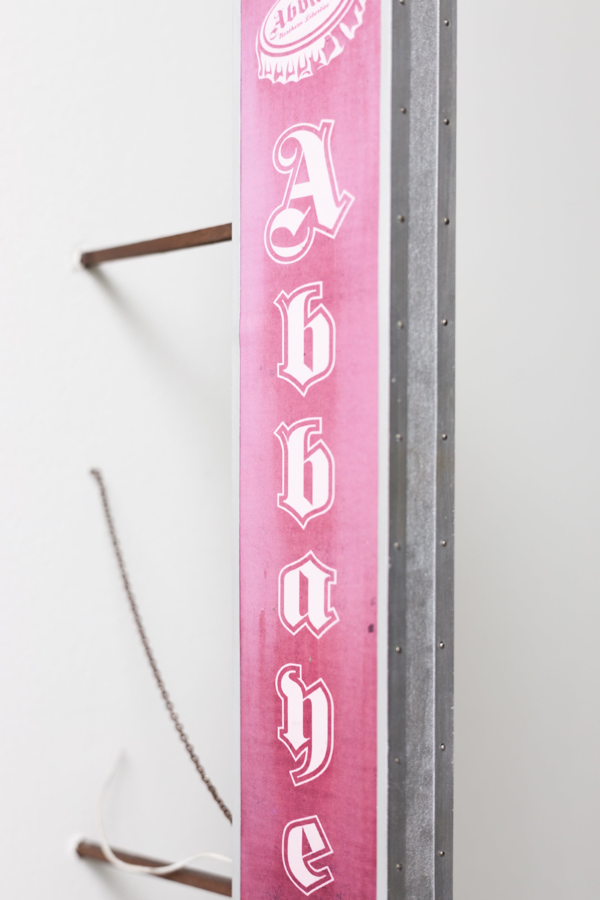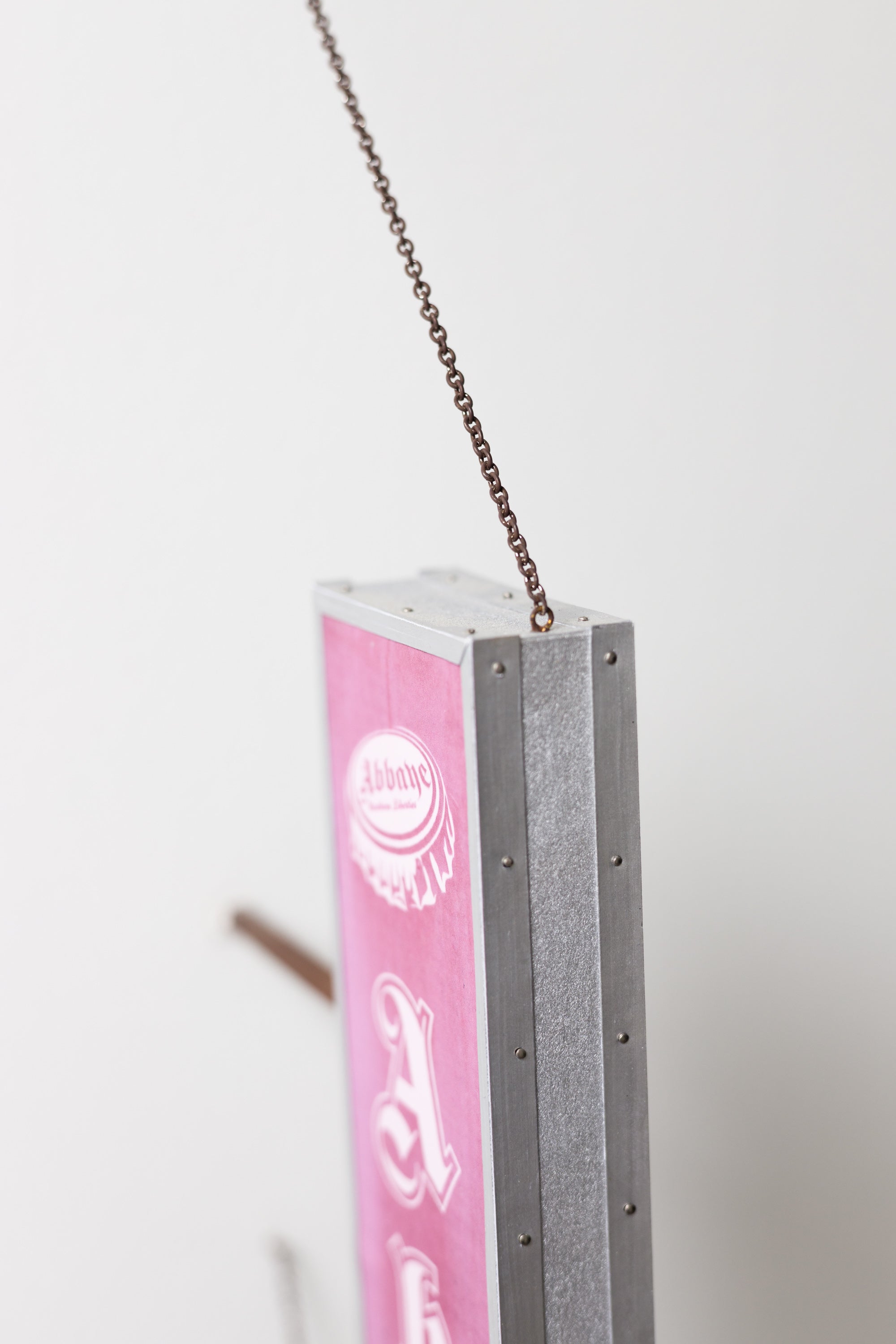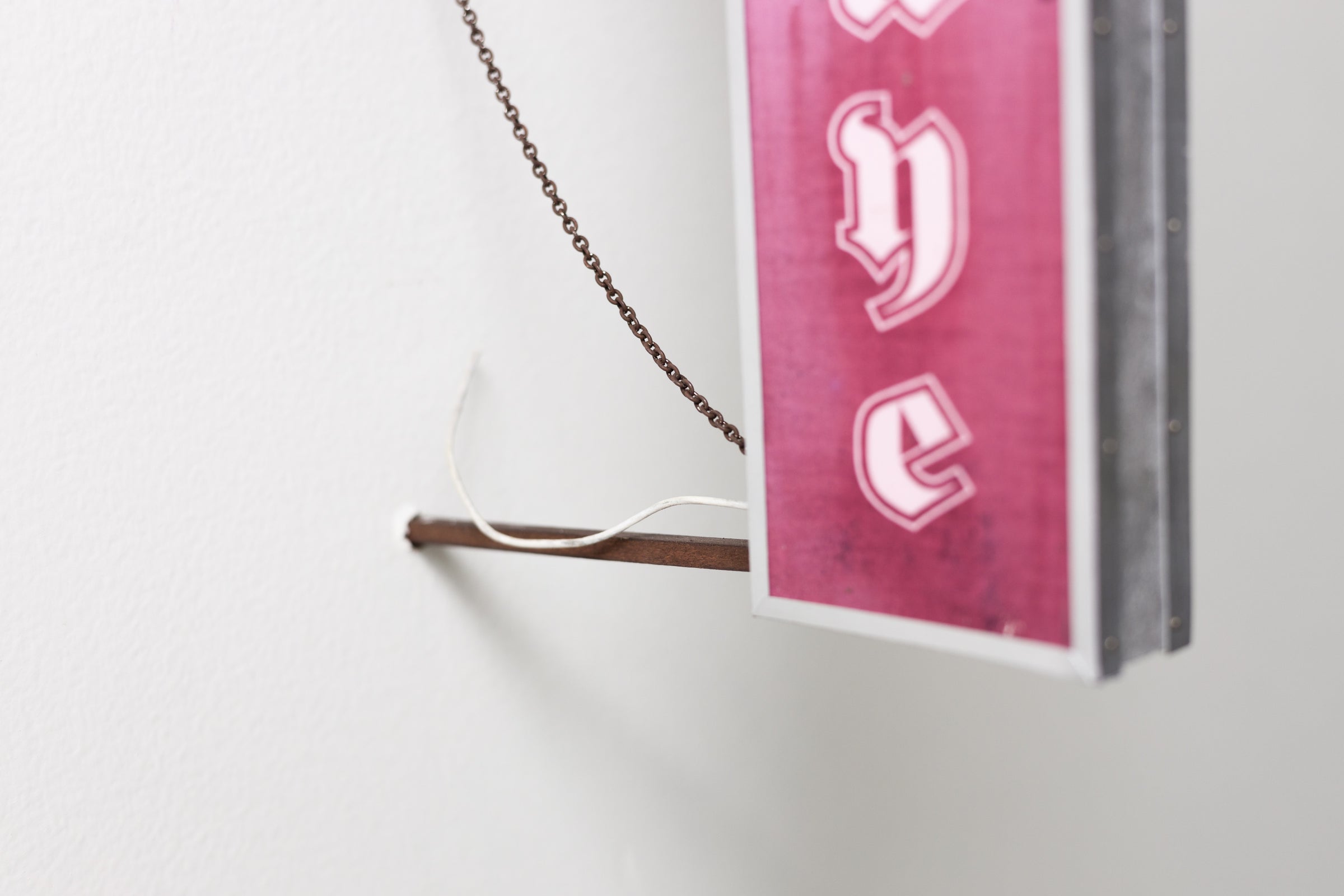 paper, inkjet print, enamel, wire, chain, aluminum tube, pastel