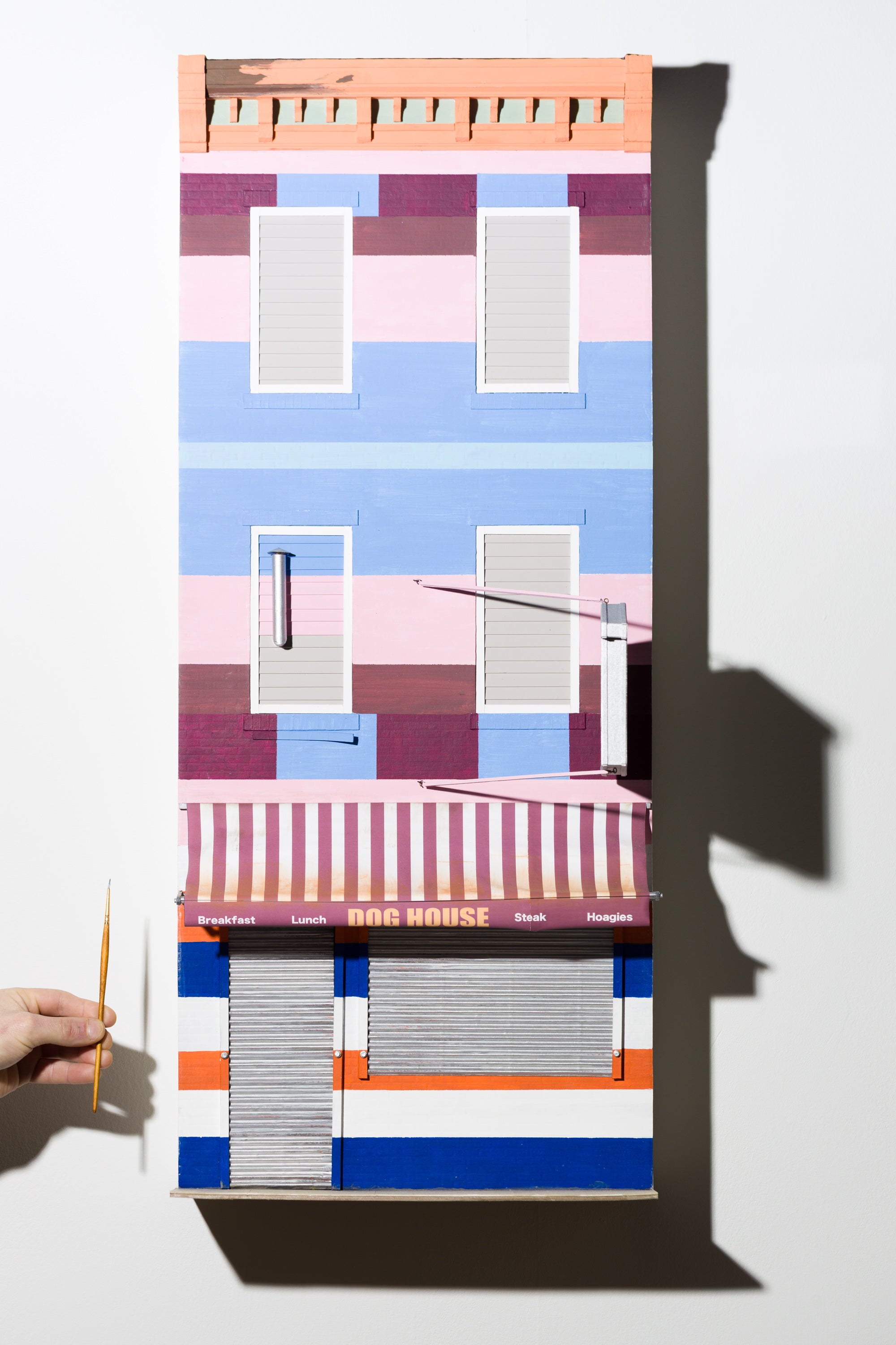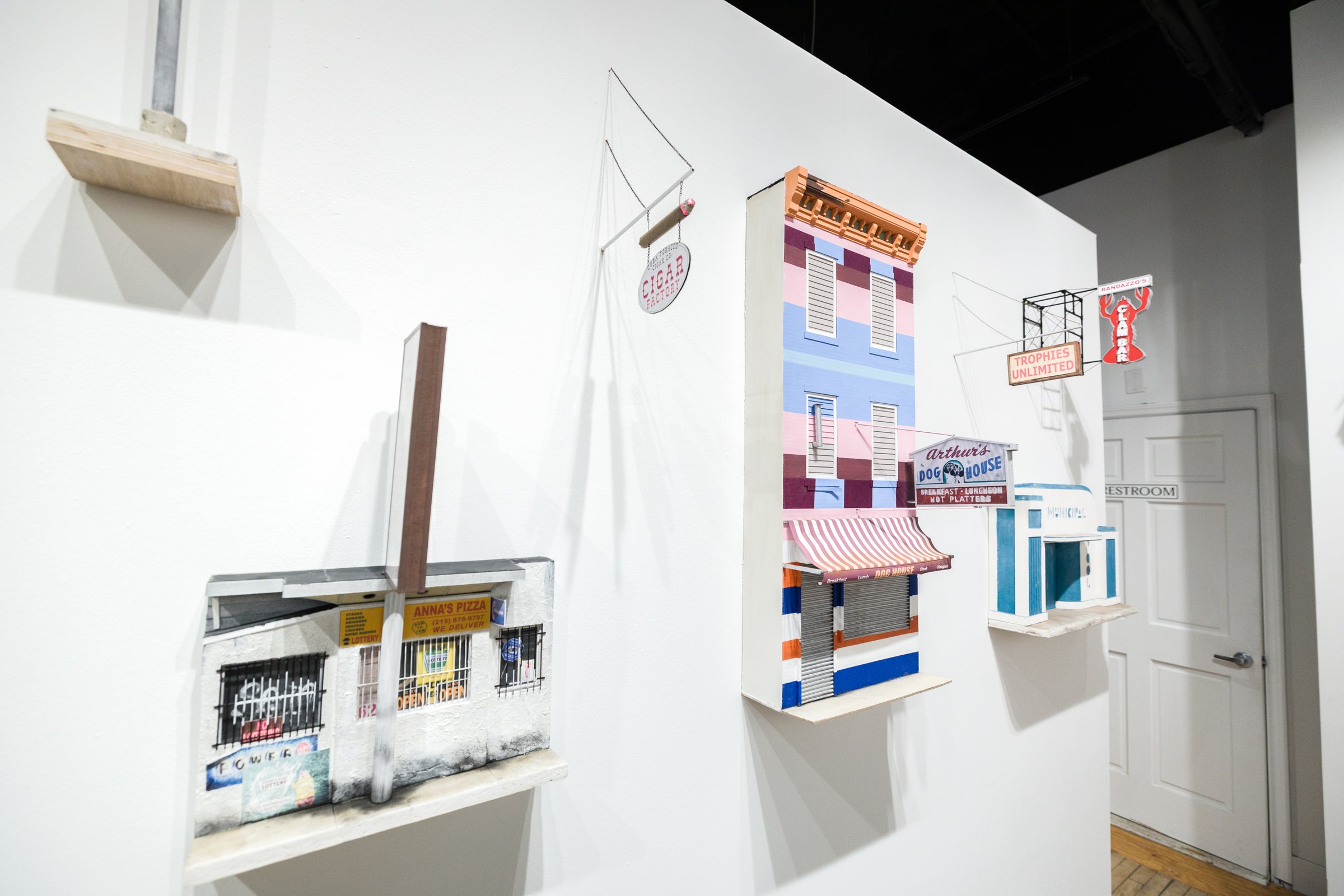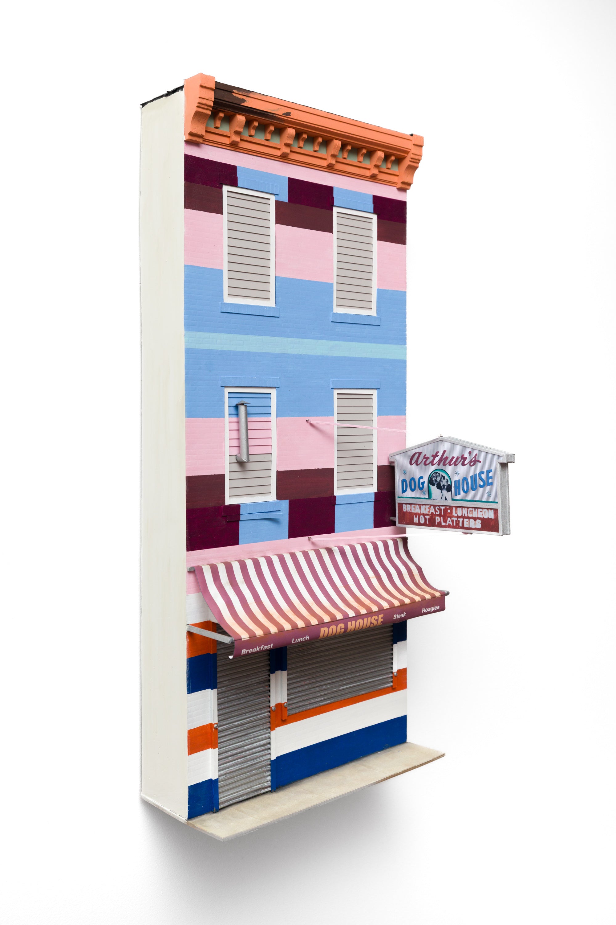 paper, acrylic, plaster, enamel, watercolor, basswood, wire, vinyl, inkjet print, pastel
