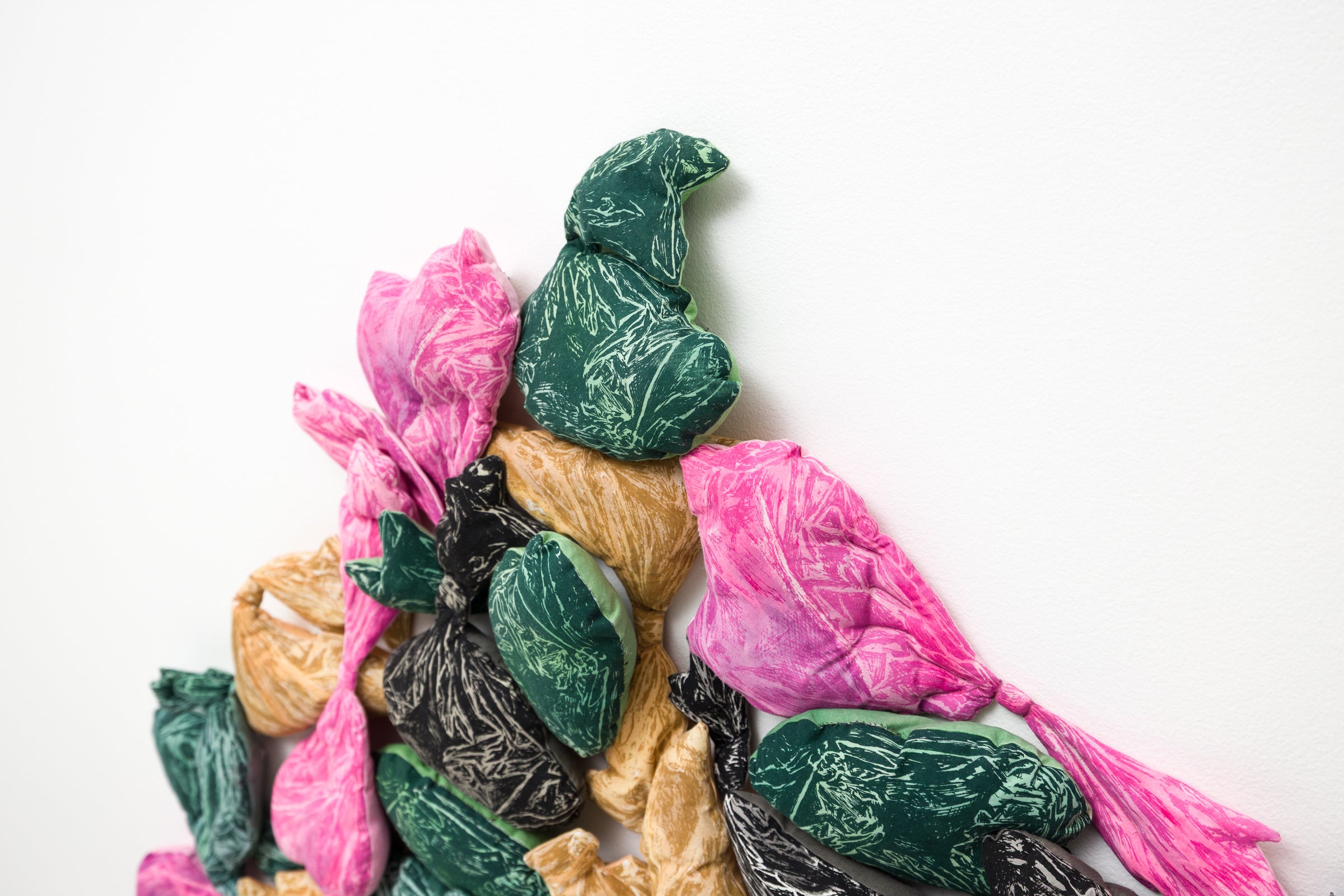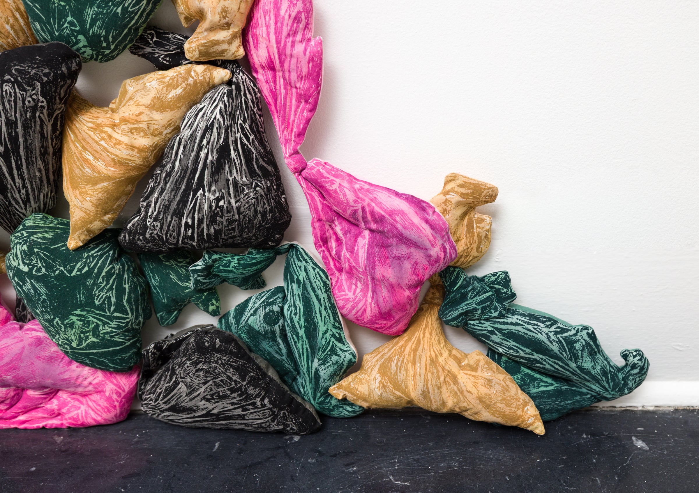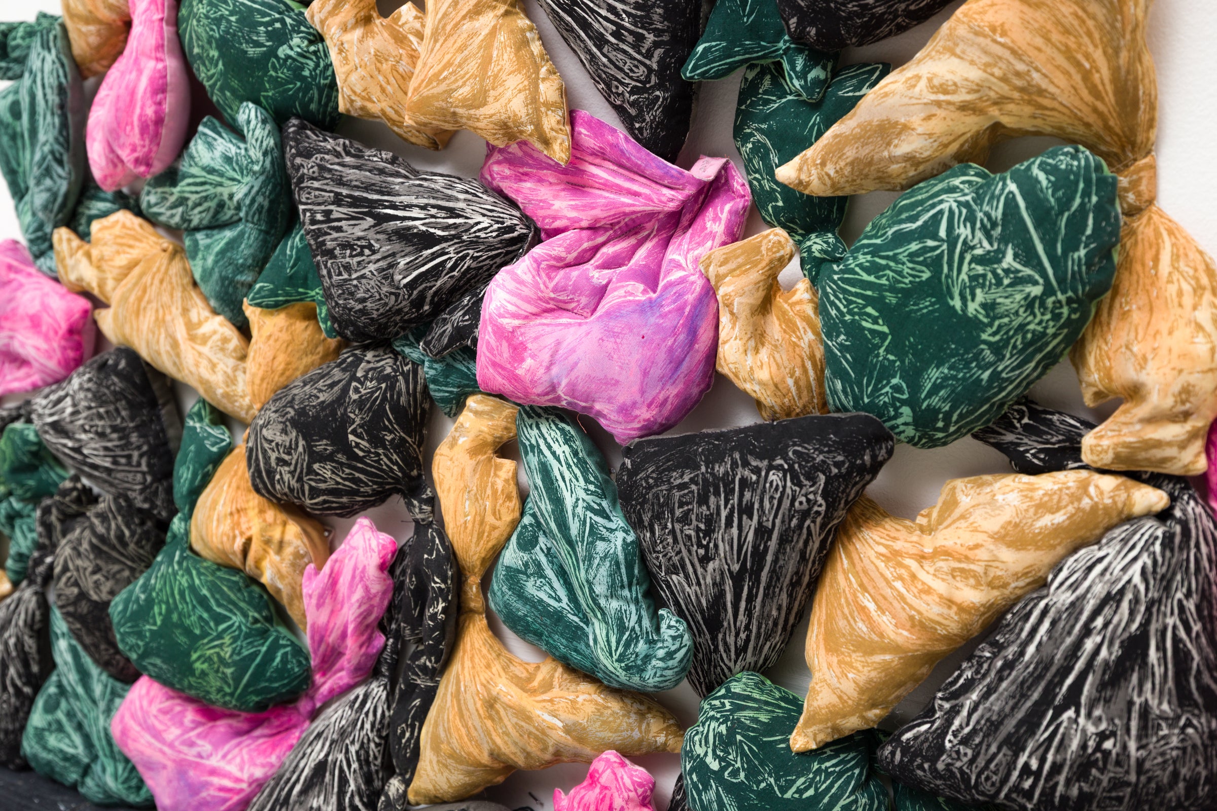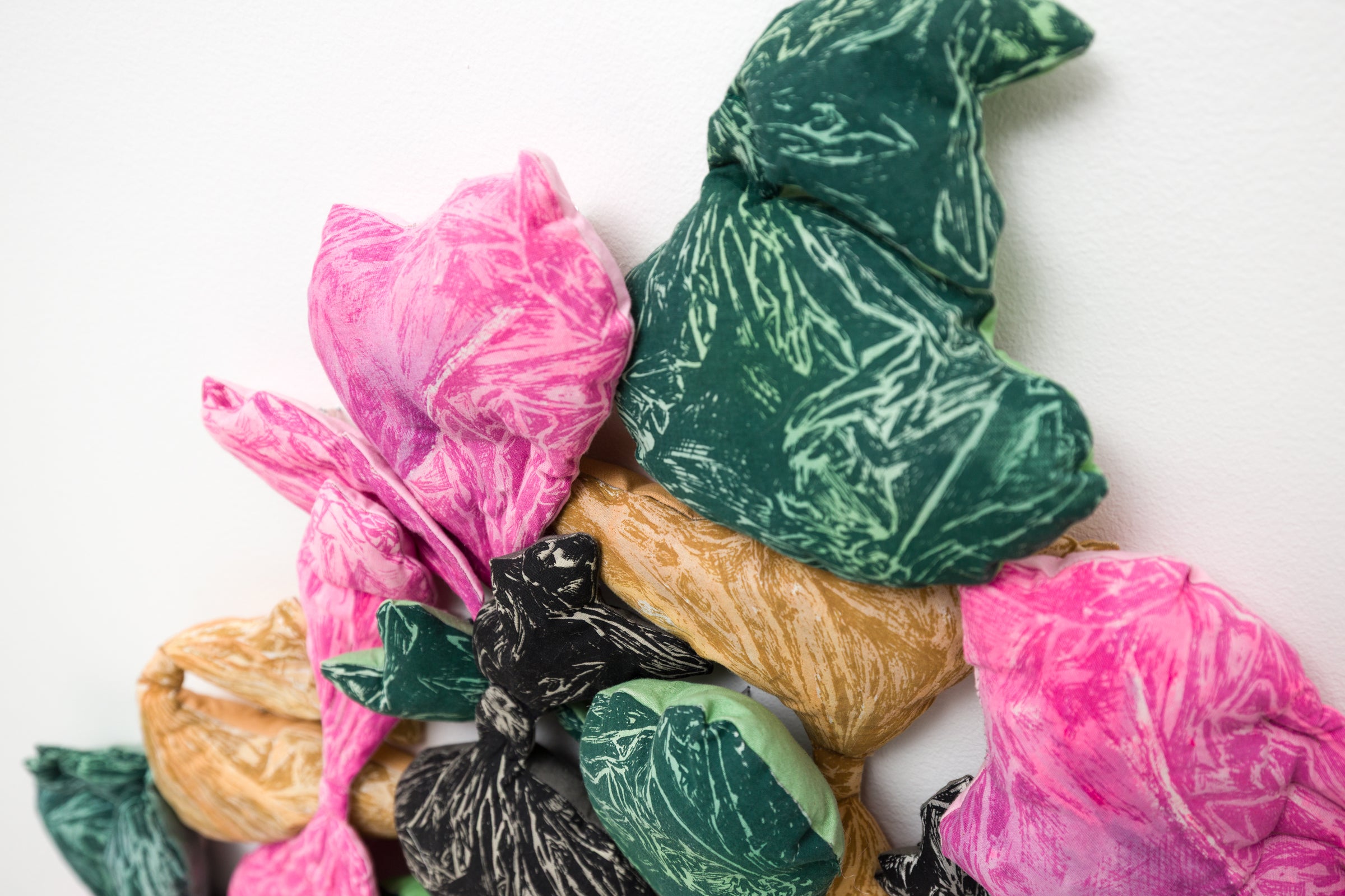 one-layer screen print and acrylic on cotton, polyester fiber fill